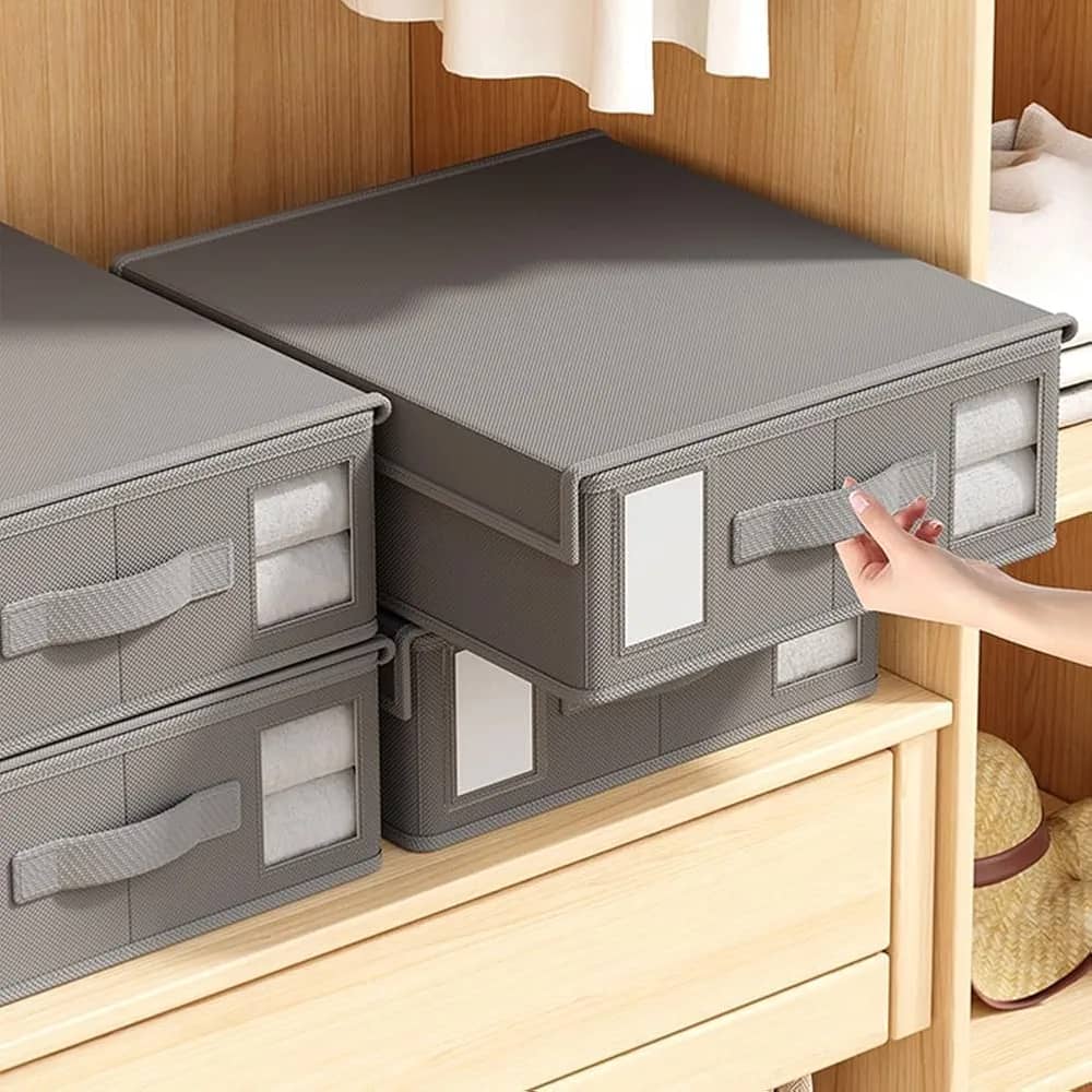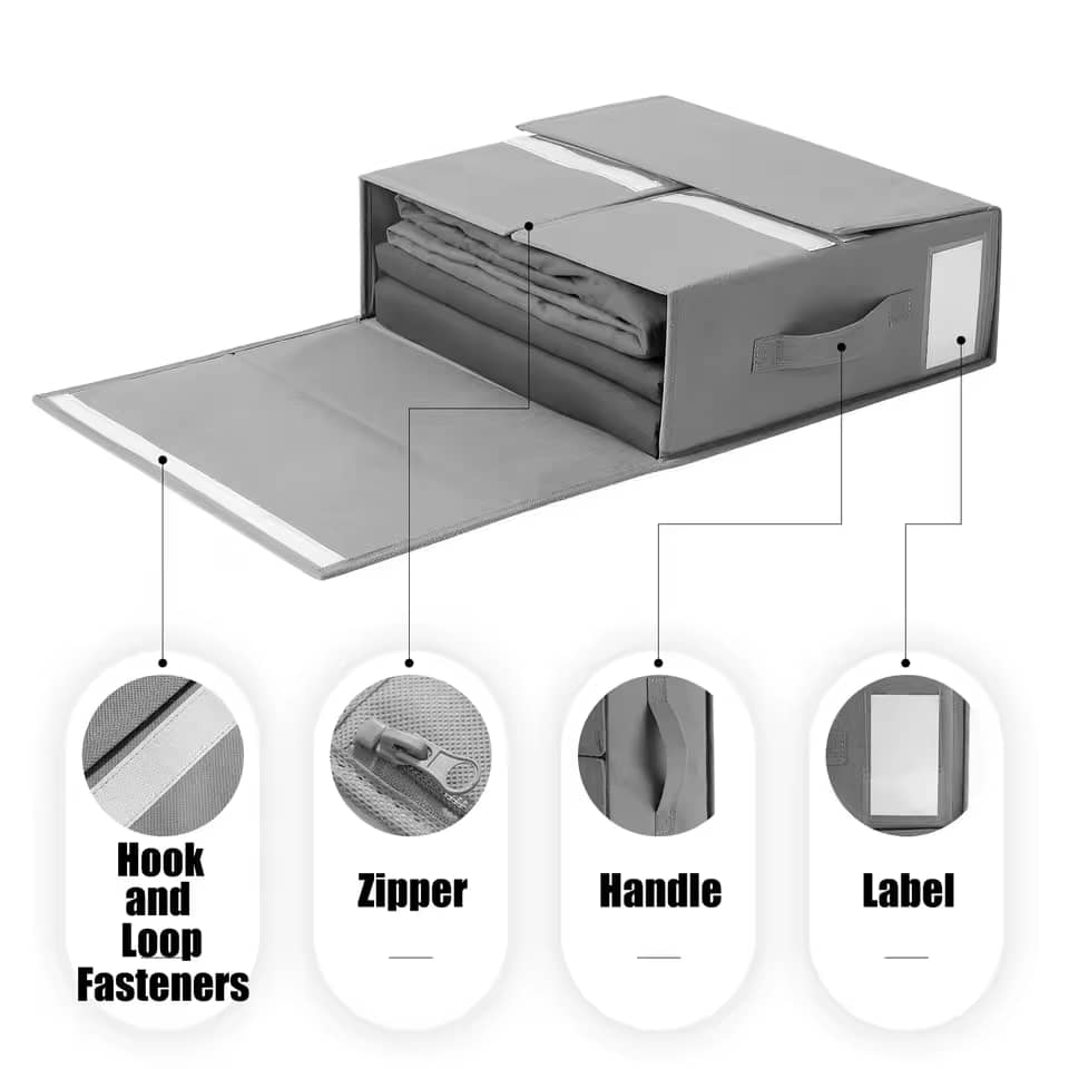 پارچه نبافته ممتاز — نظمدهندهها و انبارهای تاشوی ملحفه از پارچه نبافته محکم ساخته شده است که ضد گرد و غبار است. پارچه قابل تنفس، گردش هوا را حفظ میکند، وسایل شما را تمیز، مرتب و منظم نگه میدارد.